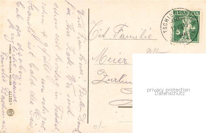 13736244 alte Postkarte Tschiertschen GR Pension Bruesch postalisch gelaufen Erhaltung siehe scans [WerneD78] KatCode: 11470100345334