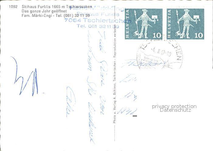 11837367 alte Postkarte Tschiertschen Skihaus Furklis postalisch gelaufen Erhaltung siehe scans KatCode: 11470100345334