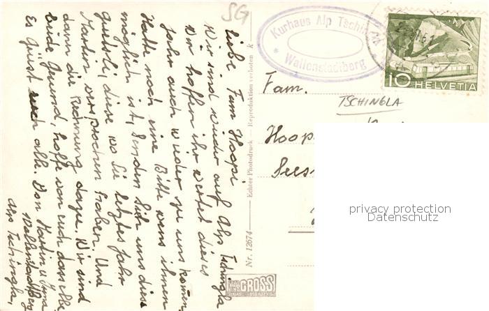 13794492 alte Postkarte Tschingla Alp 2443m GR Alp Tschingla ob Wallenstadtberg m. Hinterruck postalisch gelaufen Erhaltung siehe scans [LiesaD40] KatCode: 11470360545250