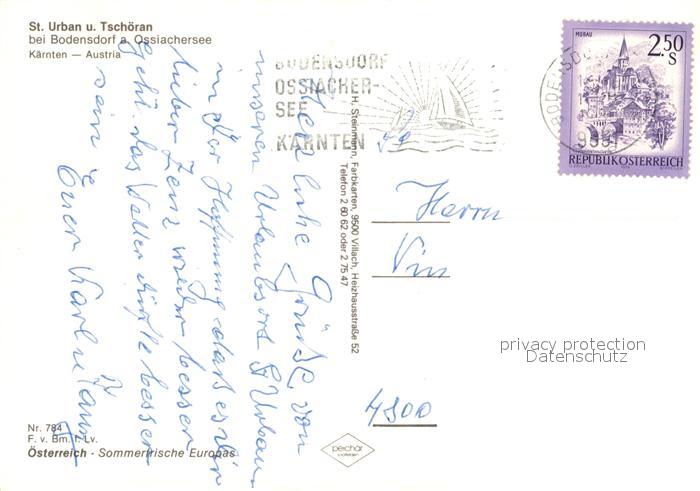 73286655 alte Postkarte Tschoeran Bodensdorf Fliegeraufnahme Sankt Urban postalisch gelaufen Erhaltung siehe scans [KathaD81] KatCode: 11390
