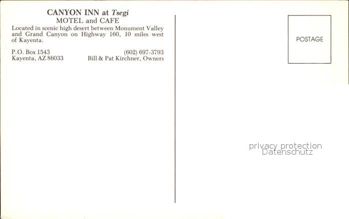 71940904 Tsegi Canyon Inn Motel postalisch nicht gelaufen Erhaltung siehe scans KatCode: 14140030000000