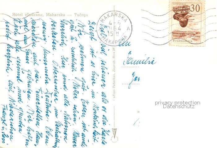 old postcard Tucepi Hotel Jadran postalisch gelaufen Erhaltung siehe scans [KathaD81]
