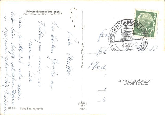 72315294 alte Postkarte TueBINGEN BW Am Neckar mit Blick zum Schloss postalisch gelaufen Erhaltung siehe scans KatCode: 11110008416041