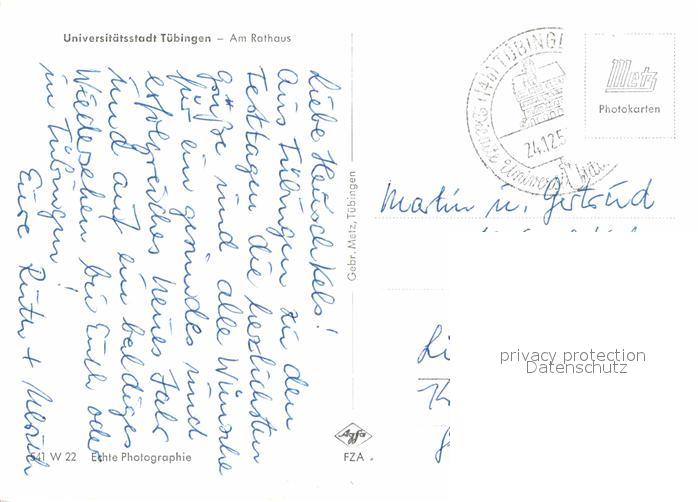 72633271 alte Postkarte TueBINGEN BW Am Rathaus Weihnachtsbaum Universitaetsstadt Nachtaufnahme postalisch gelaufen Erhaltung siehe scans [FriedD77] KatCode: 11110008416041
