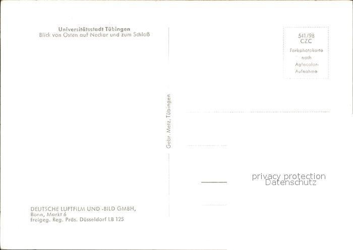 72137490 TueBINGEN BW Blick auf Neckar und Schloss Universitaetsstadt Fliegeraufnahme postalisch nicht gelaufen Erhaltung siehe scans KatCode: 11110008416041