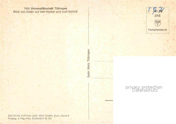 72833587 TueBINGEN BW Blick von Osten auf Neckar und Schloss Universitaetsstadt Fliegeraufnahme postalisch nicht gelaufen Erhaltung siehe scans [FriedD77] KatCode: 11110008416041