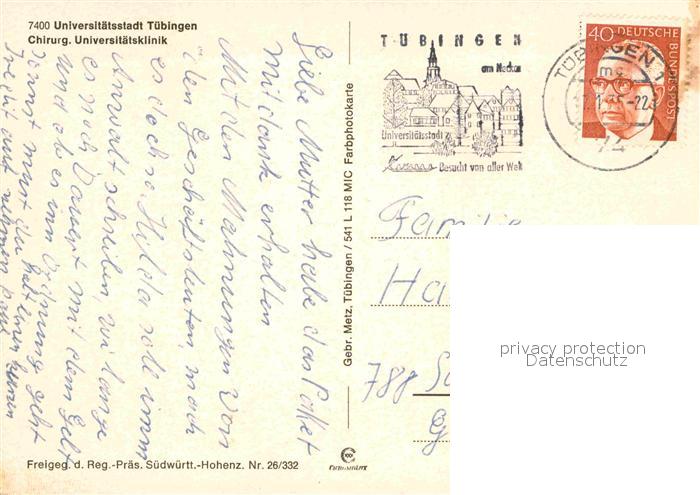 72853812 alte Postkarte TueBINGEN BW Chirurg. Universitaetsklinik postalisch gelaufen Erhaltung siehe scans [NatalD47] KatCode: 11110008416041