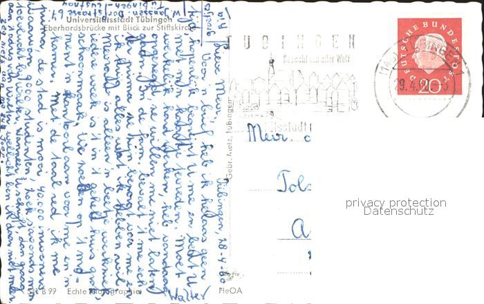 72023563 alte Postkarte TueBINGEN BW Eberhardsbruecke Stiftskirche postalisch gelaufen Erhaltung siehe scans KatCode: 11110008416041