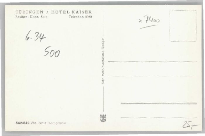 40710399 TueBINGEN BW Hotel Kaiser postalisch nicht gelaufen Alte Ansichtskarte Postkarte Katcode 11110008416041