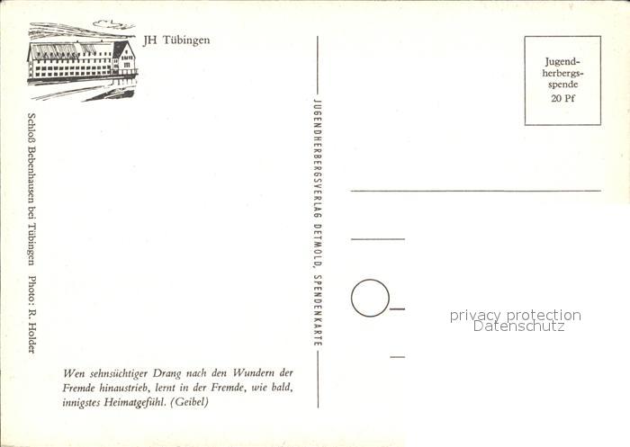 72535213 TueBINGEN BW JH Jugendherberge Gedicht Geibel postalisch nicht gelaufen Erhaltung siehe scans [FriedD77 kt118box] KatCode: 11110008416041