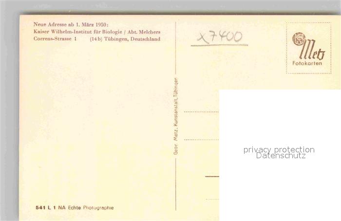 42847329 TueBINGEN BW Kaiser Wilhelm Institut Biologie postalisch nicht gelaufen Erhaltung siehe scans [KathaD81] KatCode: 11110008416041