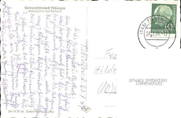 72405189 alte Postkarte TueBINGEN BW Marktplatz mit Rathaus postalisch gelaufen Erhaltung siehe scans KatCode: 11110008416041