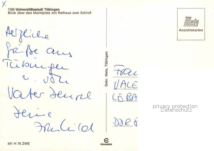72631618 TueBINGEN BW Marktplatz mit Rathaus und Schloss postalisch nicht gelaufen Erhaltung siehe scans [LiesaD40] KatCode: 11110008416041