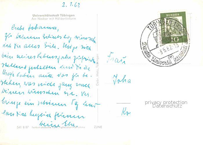72752857 alte Postkarte TueBINGEN BW Neckar Hoelderlinturm postalisch gelaufen Erhaltung siehe scans [KathaD81] KatCode: 11110008416041