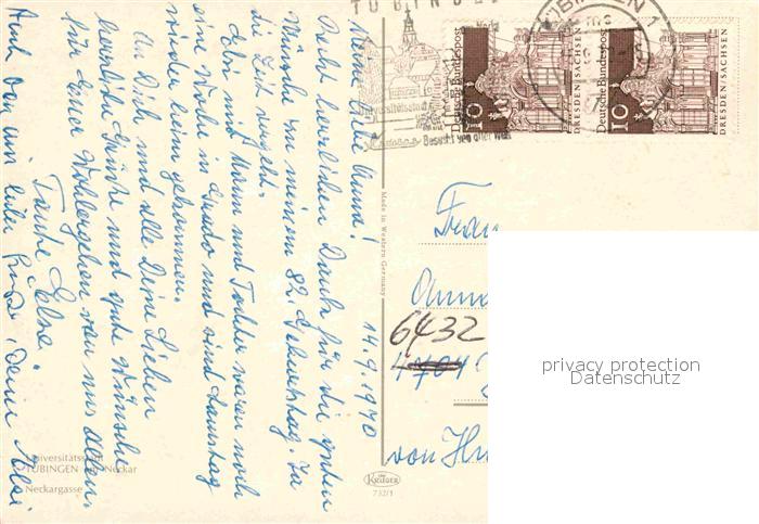 72831848 alte Postkarte TueBINGEN BW Neckargasse Altstadt Universitaetsstadt postalisch gelaufen Erhaltung siehe scans [FriedD77] KatCode: 11110008416041