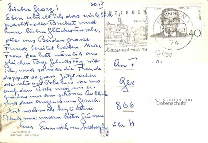 72512550 alte Postkarte TueBINGEN BW Neckarpartie Kirche postalisch gelaufen Erhaltung siehe scans KatCode: 11110008416041