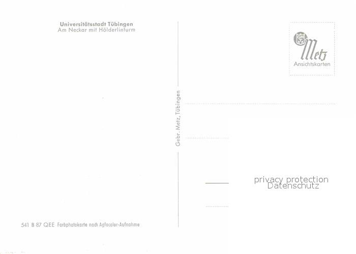 72622746 TueBINGEN BW Neckarpartie mit Hoelderlinturm postalisch nicht gelaufen Erhaltung siehe scans [WerneD78] KatCode: 11110008416041