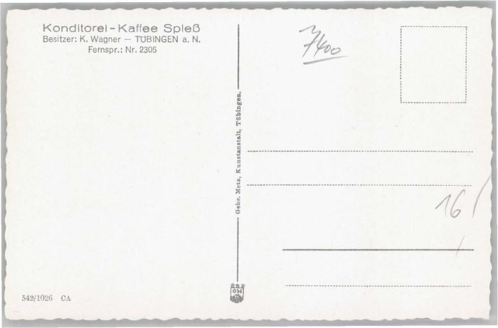 40710559 TueBINGEN BW onditorei Cafe Spiess * postalisch nicht gelaufen Alte Ansichtskarte Postkarte Katcode 11110008416041