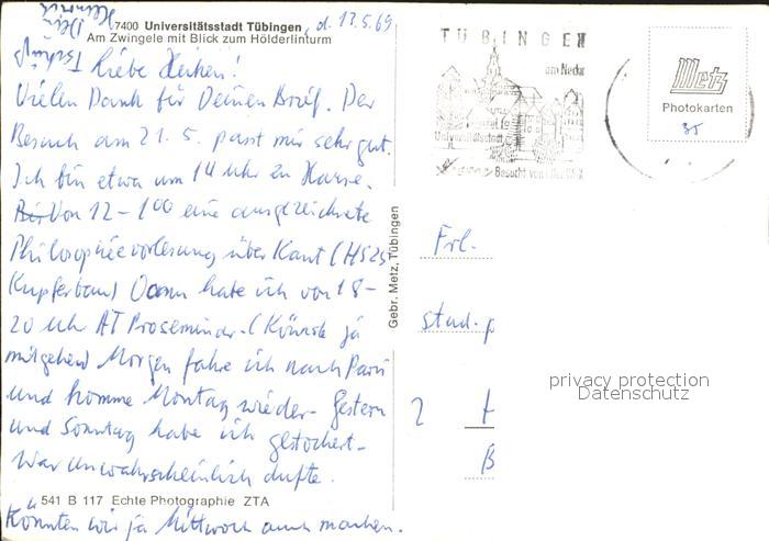 72178820 alte Postkarte TueBINGEN BW Zwingele Hoelderlinturm postalisch gelaufen Erhaltung siehe scans KatCode: 11110008416041