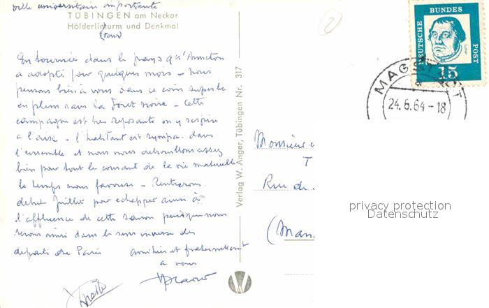 72875211 alte Postkarte Tuebingen Hoelderlinturm und Denkmal postalisch gelaufen Erhaltung siehe scans [FriedD77] KatCode: 11110008416041