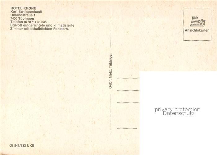 73776131 Tuebingen Hotel Krone postalisch nicht gelaufen Erhaltung siehe scans [WerneD78] KatCode: 11110008416041