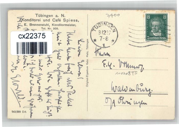 30739625 alte Postkarte Tuebingen onditorei Cafe Spiess postalisch gelaufen KatCode: 11110008416041
