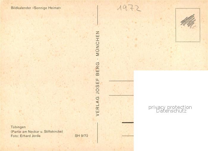 73141951 Tuebingen Partie am Neckar mit Stiftskirche Wasserspiegelung Bildkalender Sonnige Heimat postalisch nicht gelaufen Erhaltung siehe scans [FriedD77] KatCode: 11110008416041