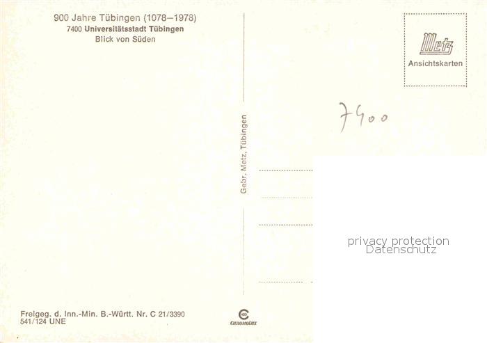 72872397 Tuebingen Stadtpanorama 900 Jahre Jubilaeum Blick von Sueden Fliegeraufnahme postalisch nicht gelaufen Erhaltung siehe scans [FriedD77] KatCode: 11110008416041