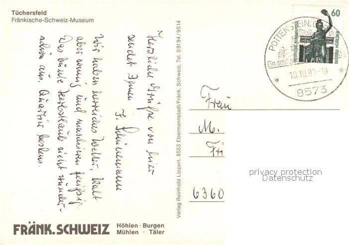 73210573 alte Postkarte Tuechersfeld Fraenkische Schweiz Museum Felsen postalisch gelaufen Erhaltung siehe scans [FriedD77] KatCode: 11110009472179