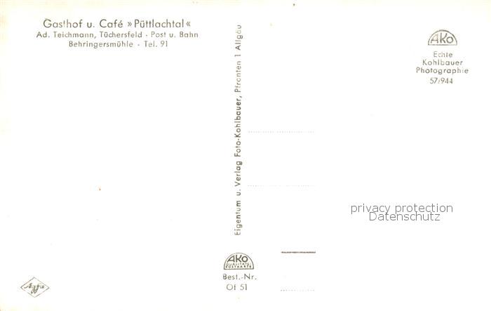 74052412 Tuechersfeld Gasthof Cafe Puettlachtal postalisch nicht gelaufen Erhaltung siehe scans [FriedD77] KatCode: 11110009472179