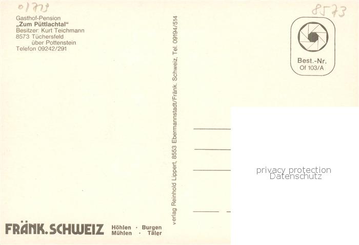 73867960 Tuechersfeld Gasthof Pension Zum Puettlachtal Felsen postalisch nicht gelaufen Erhaltung siehe scans [WerneD78] KatCode: 11110009472179