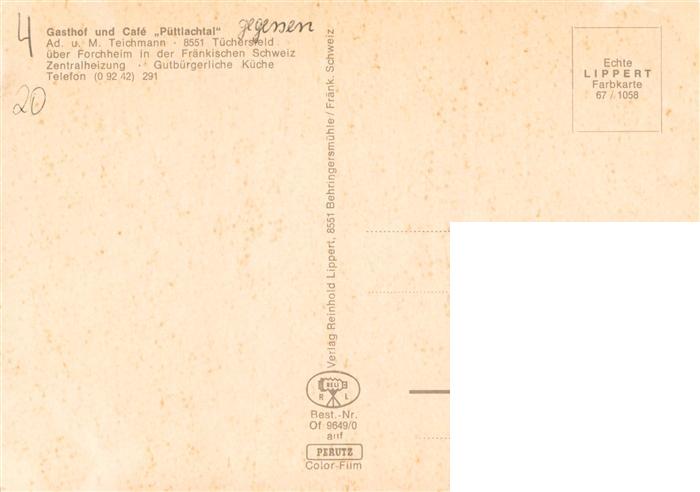 73891272 Tuechersfeld Gasthof zum Puettlachtal Cafe postalisch nicht gelaufen Erhaltung siehe scans [WerneD78] KatCode: 11110009472179