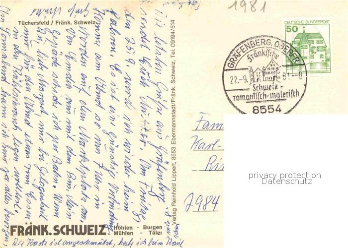 72898057 alte Postkarte Tuechersfeld Motiv postalisch gelaufen Erhaltung siehe scans [FriedD77] KatCode: 11110009472179