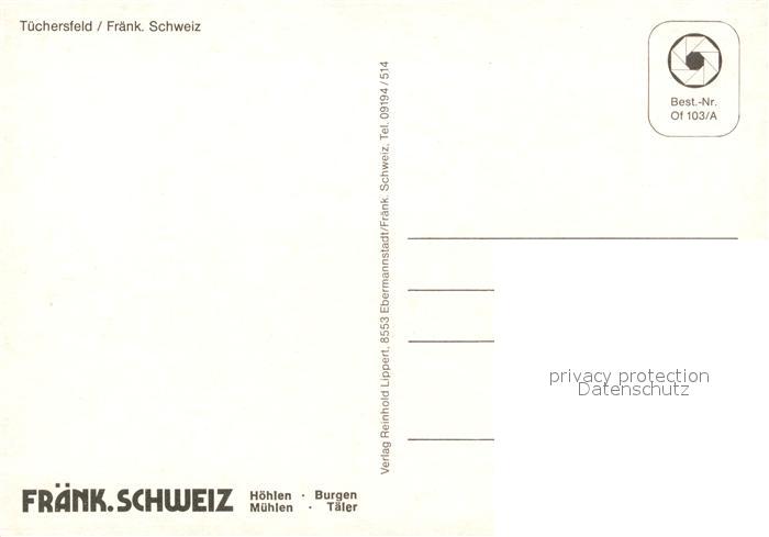 73248973 Tuechersfeld Ortsmotiv mit Felsen Fraenkische Schweiz postalisch nicht gelaufen Erhaltung siehe scans [FriedD77] KatCode: 11110009472179