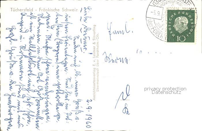 72471938 alte Postkarte Tuechersfeld Teilansicht Felsen Fraenkische Schweiz postalisch gelaufen Erhaltung siehe scans KatCode: 11110009472179