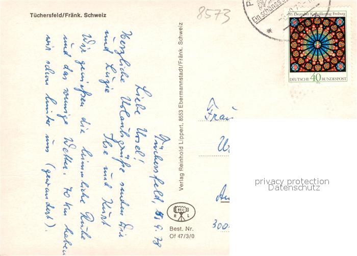 72958814 alte Postkarte Tuechersfeld Teilansicht Felsenstadt postalisch gelaufen Erhaltung siehe scans [FriedD77] KatCode: 11110009472179