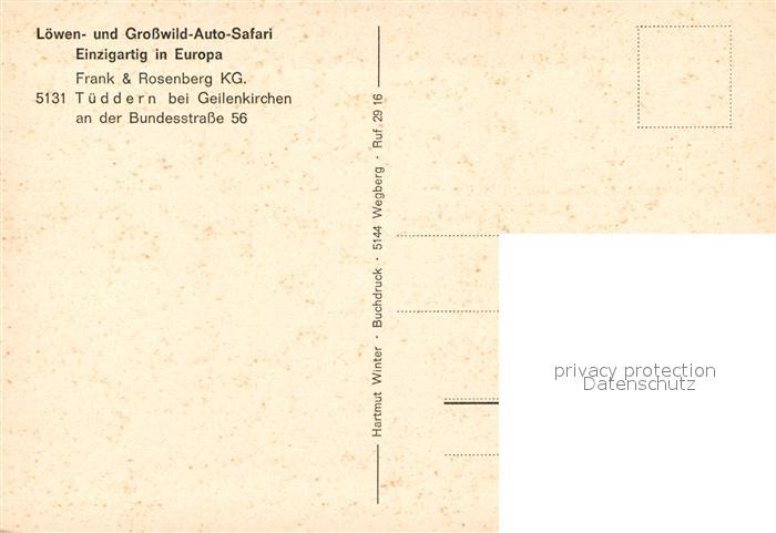 72999589 Tueddern Loewen und Grosswild Auto Safari postalisch nicht gelaufen Erhaltung siehe scans [WerneD78] KatCode: 11110005370024