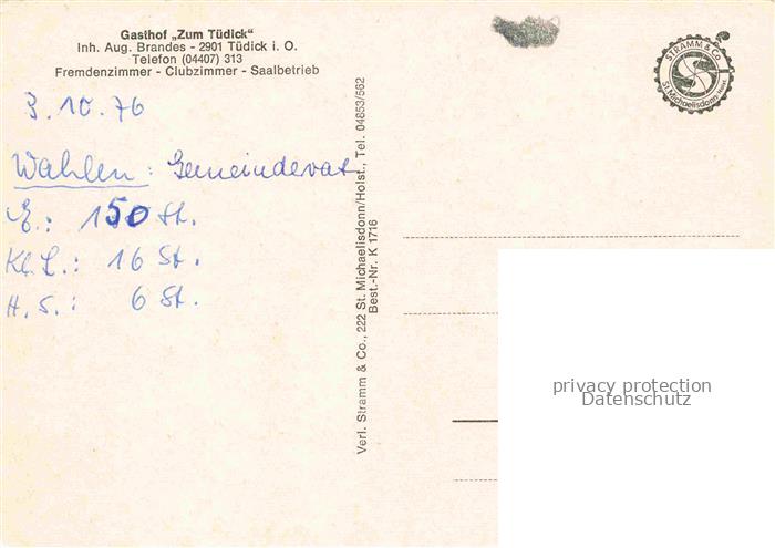 74152277 Tuedick Wardenburg Oldenburg Niedersachsen Gasthof Zum Tuedick Bar Gastraum postalisch nicht gelaufen Erhaltung siehe scans [WerneD78] KatCode: 11110003458013