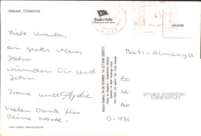 old postcard Tuerkei Turkey Dinar postalisch gelaufen Erhaltung siehe scans