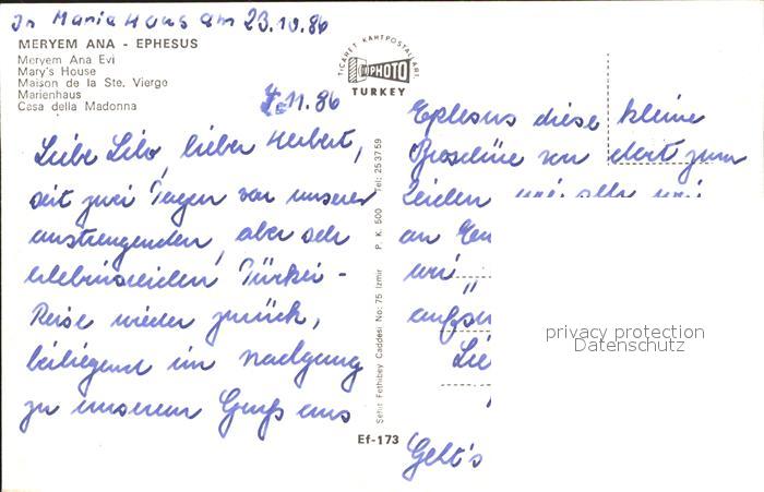 Tuerkei Turkey Ephesus Meryem Ana Mary’s House postalisch nicht gelaufen Erhaltung siehe scans