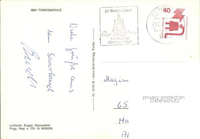 72032874 alte Postkarte Tuerkismuehle Bahnhof Eisenbahn Fliegeraufnahme postalisch gelaufen Erhaltung siehe scans KatCode: 11110010046114