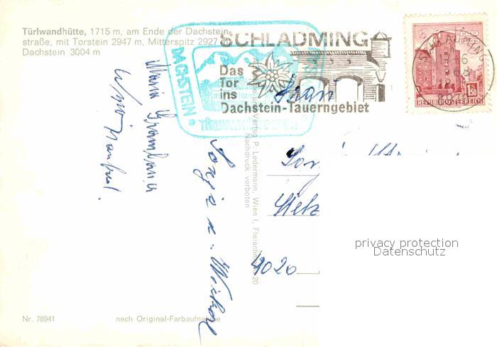 72790589 alte Postkarte Tuerlwandhuette am Ende des Dachstein postalisch gelaufen Erhaltung siehe scans [LiesaD40] KatCode: 11390222061236