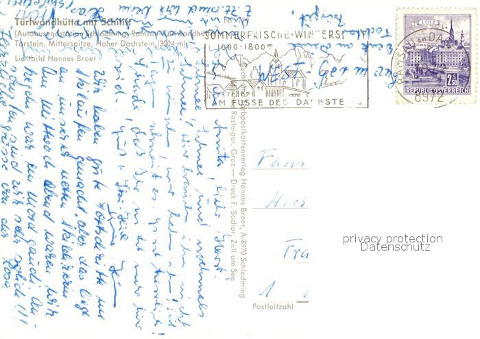 73339842 alte Postkarte Tuerlwandhuette Berghuette mit Schilift Hoher Dachstein Dachsteingebirge postalisch gelaufen Erhaltung siehe scans [FriedD77] KatCode: 11390222061236