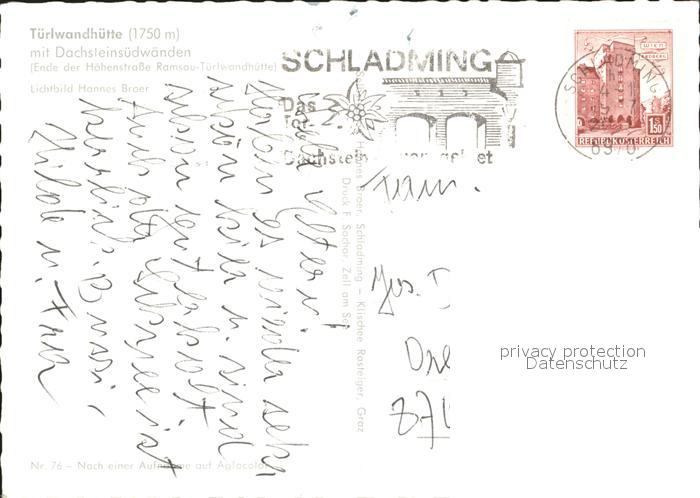72056067 alte Postkarte Tuerlwandhuette Dachsteinsuedwaenden Skispuren postalisch gelaufen Erhaltung siehe scans KatCode: 11390222061236