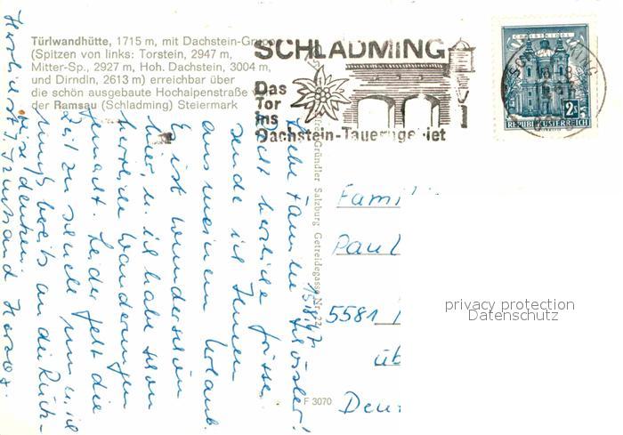72832180 alte Postkarte Tuerlwandhuette mit Dachstein-Gruppe postalisch gelaufen Erhaltung siehe scans [LiesaD40] KatCode: 11390222061236