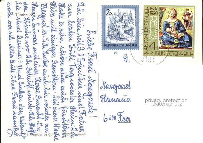 72430265 alte Postkarte Tuernitz Niederoesterreich Ortsansichten Kirche postalisch gelaufen Erhaltung siehe scans KatCode: 11390122031414