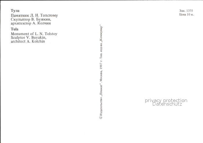 Tula Tolstoy Denkmal postalisch nicht gelaufen Erhaltung siehe scans [NatalD47]