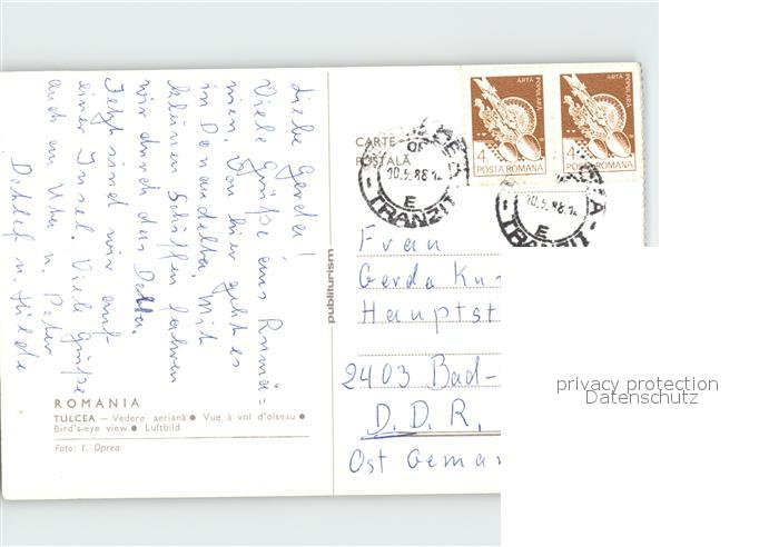 old postcard Tulcea Fliegeraufnahme postalisch gelaufen Erhaltung siehe scans