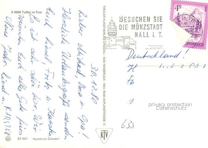 73358949 alte Postkarte Tulfes Tirol Winterlandschaften Wegkreuz Skifahrer postalisch gelaufen Erhaltung siehe scans [KathaD81] KatCode: 11390332070360