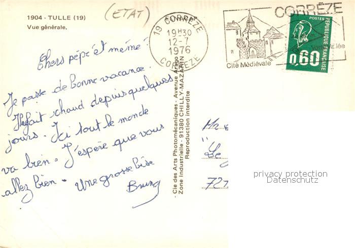 13582592 Tulle Correze Vue generale postalisch gelaufen Erhaltung siehe scans [WerneD78] carte postale Wern Katcode 11170019219272